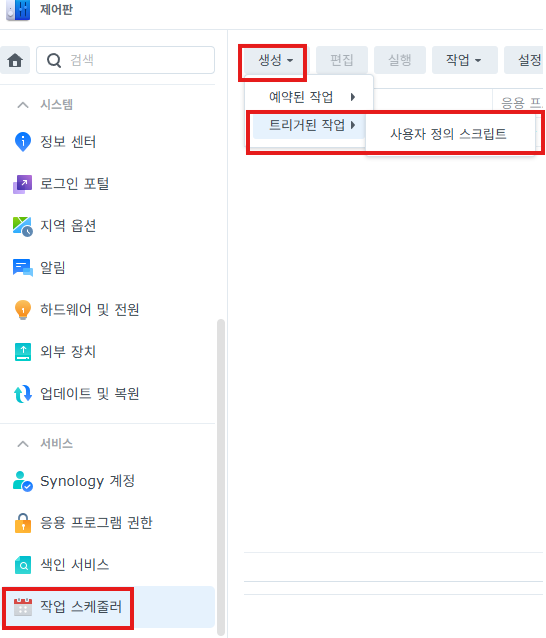 제어판>작업스케줄러>생성>트리거작업>사용자정의 스크립트